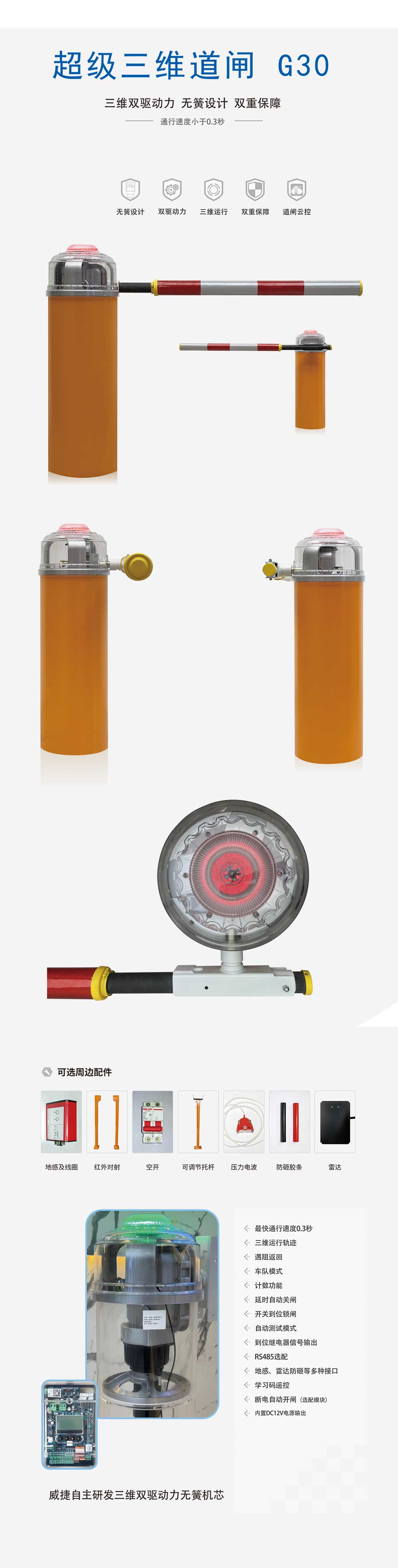 打破道閘常規(guī)運(yùn)行方式,起點(diǎn)采用與車速同向驅(qū)動(dòng)運(yùn)行方式,超高速、超強(qiáng)度運(yùn)行,通行速度小于0.3秒;